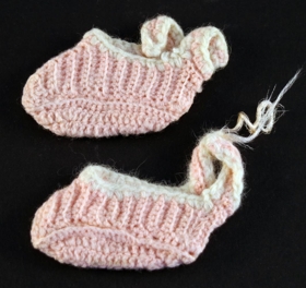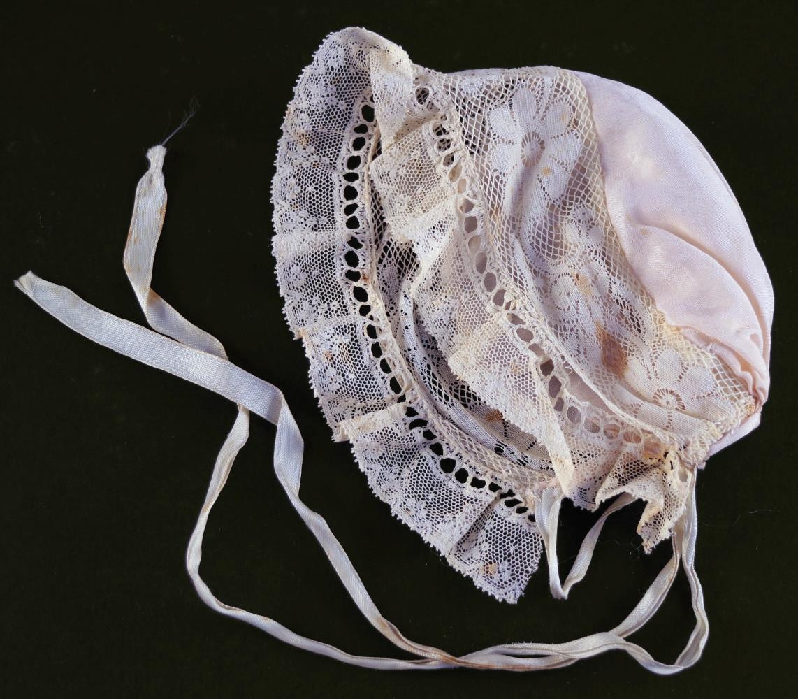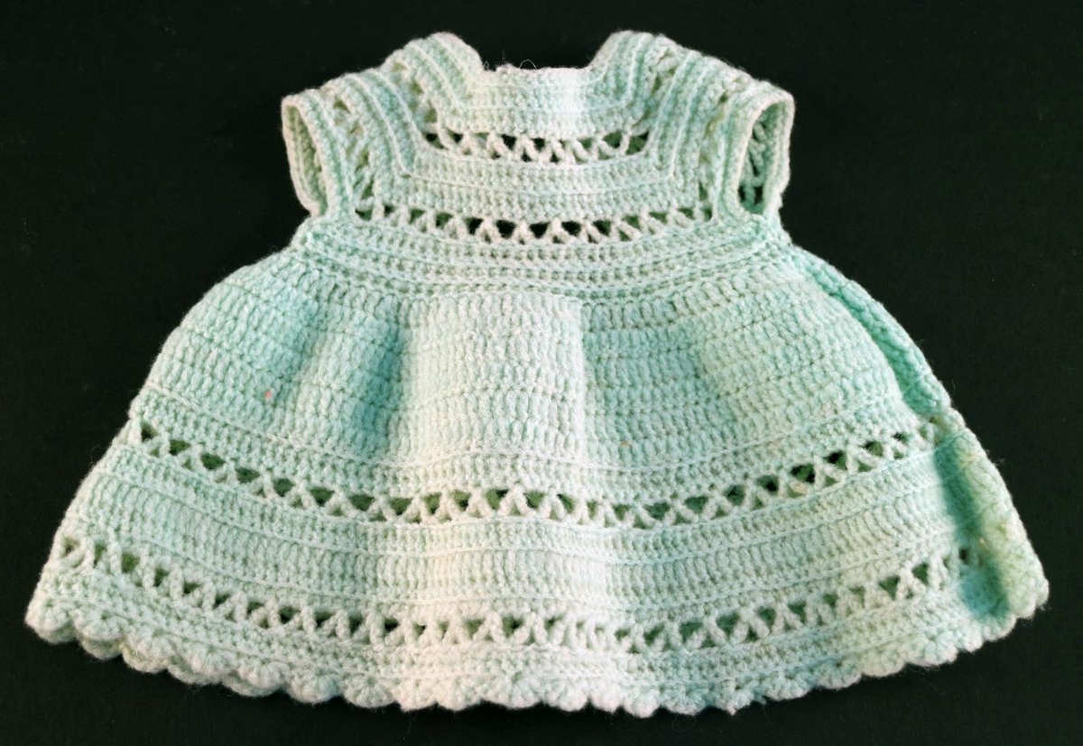 Með dúkkunni fylgja dúkkuföt / brúðuföt til skiptanna. Henni fylgir heklaður kjóll, sægrænn að lit og stutterma. Fimm hvítar tölur loka baki kjólsins. Dúkkunni fylgir einnig hekluð peysa, fölbleik með hvítum köntum. Peysan er opin og með víðar ermar sem dregnar eru saman við úlnliði. Einnig fylgja prjónaðar nærbuxur, fölbleikar að lit. Buxurnar eru rykktar saman í mittið með hvítum spotta. Dúkkunni fylgja þá fjórar húfur. Ein þeirra er saumuð úr þunnu, bleiku efni og hvítri blúndu og bundin undir höku með borða. Hinar þrjár eru heklaðar. Ein þeirra er bleik að lit með hvítum kanti, í stíl við peysuna. Hinar tvær eru sægrænar að lit. Önnur þeirra hefur hvít og bleik blóm við hvort eyra og er bundin undir höku með borða. Hin líkist franskri beret húfu. Báðar eru í stíl við kjólinn. Heklað skópar fylgir dúkkunni, það er bleikt að lit með hvítum köntum. Einnig fylgir henni stakur, heklaður skór. Sá er hvítur að lit með rauðum þráðum og dúski.