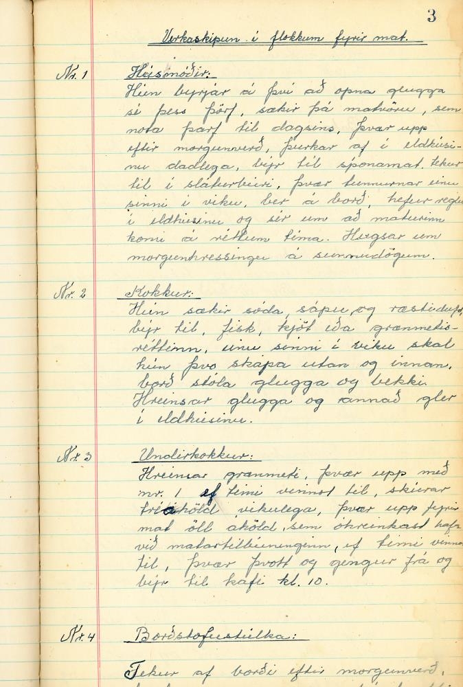 Þar má finna tilsögn við umgengni í eldhús, matreiðslu o.fl.