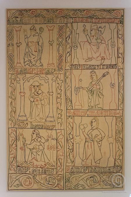 Teppið er eftirmynd af klæði sem var fengið frá Skarði á Skarðsströnd 1881. Það var allt í tættlum þegar það kom á Þjóðminjasafnið 1881. Matthías Þórðarson raðaði bútunum saman árið 1910 og upp úr rústunum reis nokkurn vegin heillgt klæði. Kristján Eldjárn þjóðminjavörður og eiginmaður Halldóru dróg upp munstrið og bætti inn strikum þar sem við átti. Greinilegt er að Halldóra hefur farið nákvæmlega eftir frumgerðinni bæði í litavali og útsaumsgerð. Teppið er saumað í drappað efni með áróragarni í öllum regnbogans litum með kontúrsaum. Teppið er strengt á blindramma úr viði. Lesa má nánar um teppið í bók Kristjáns Eldjárns sem heitir Hundrað ár í Þjóðminjasafni, nr. 18.