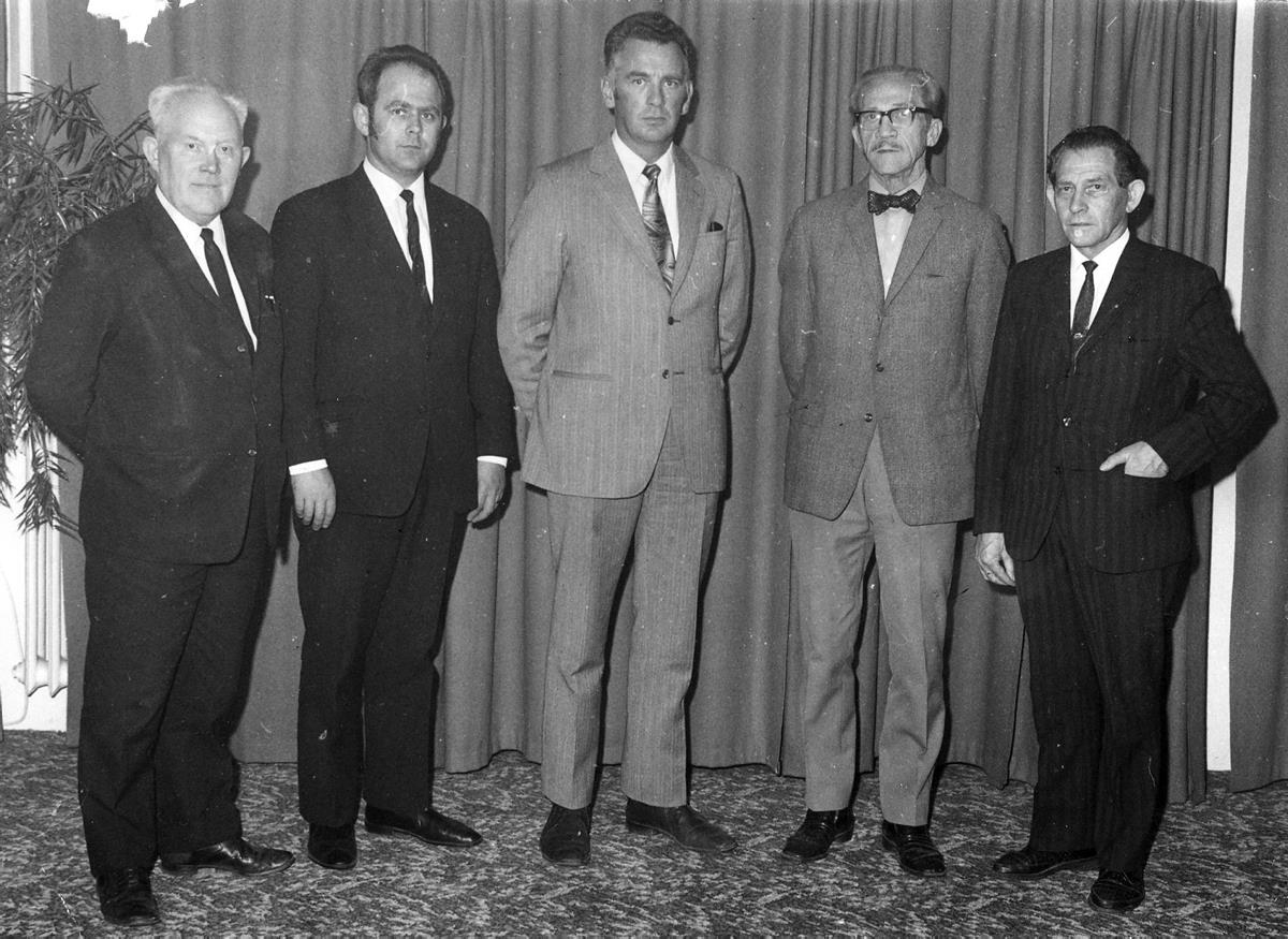 Bæjarstjórar Keflavíkur frá 1949 - 1980. Myndin tekin 1970. Frá vinstri : Valtýr Guðjónsson, Jóhann Einvarðsson, Sveinn Jónsson, Alfreð Gíslason, Ragnar Guðleifsson. Á myndina vantar Eggert Jónsson en hann lést 18. júlí 1962.