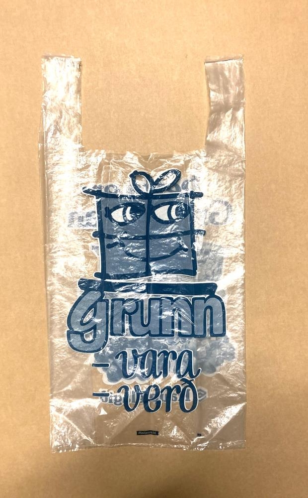 Plastpoki, glær innkaupapoki frá Kaupfélaginu á Hvolsvelli. "Þetta er Grunnvaran". Á hinni hliðinni stendur "grunn -vara -verð.