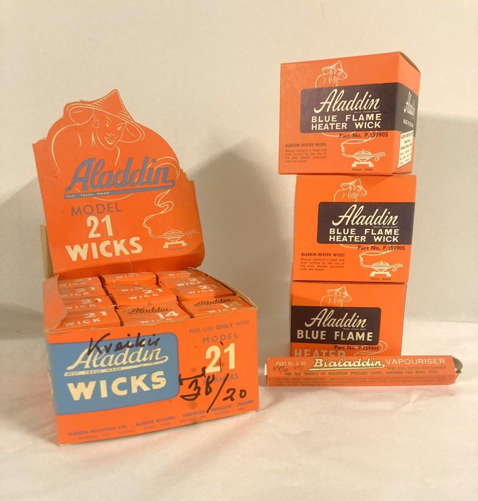 Af lager Kaupfélags Rangæinga; pappaaskja með 12 pk af kveikjum í Aladdin lampa. 10 stk fyrir Model 21 og 2 stk. fyrir Model 14.. Verðmerkt, kr. 38,20. Hluti af munum frá Kaupfélagssafninu á Hvolsvelli sem lagt var niður árið 2024.