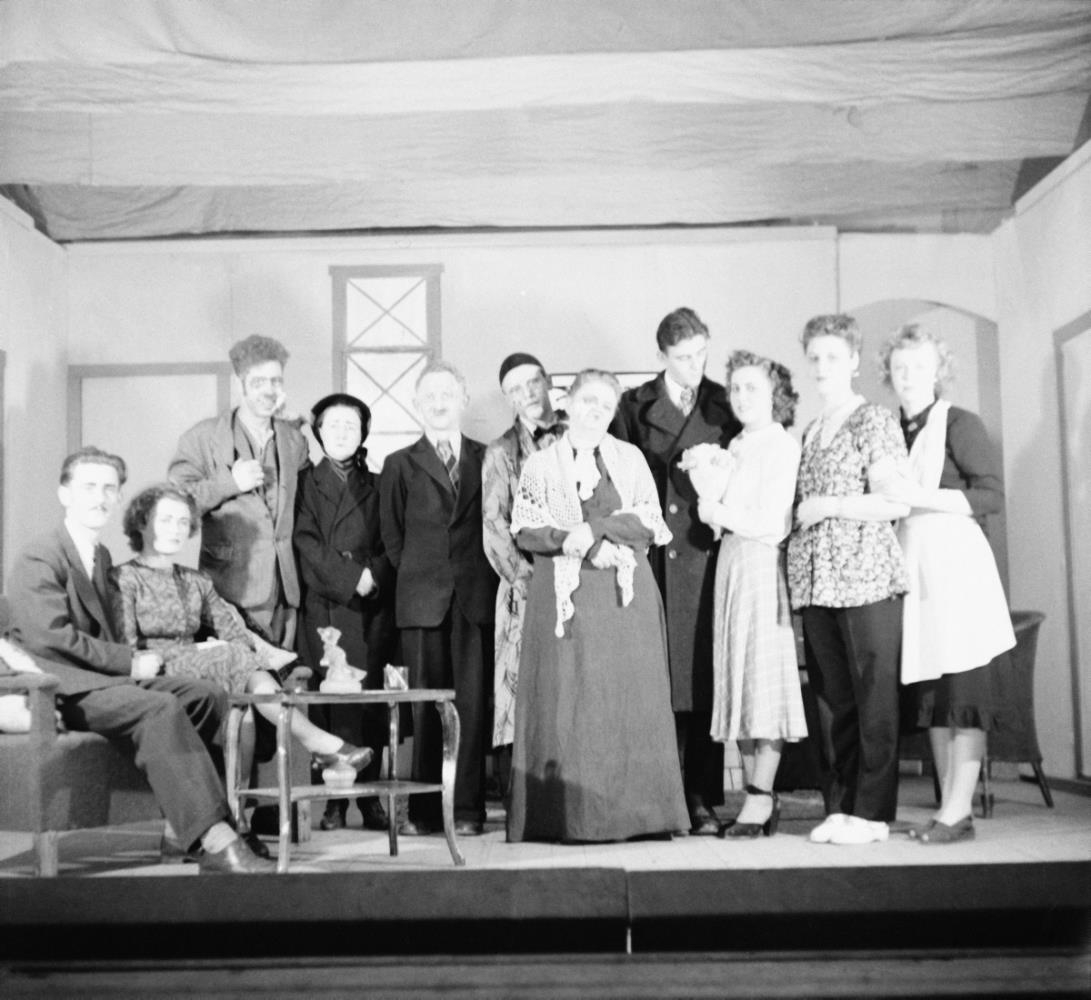 Frá leiksýningunni Leynimelur 13 sem Stúkan Vík setti á svið 1949. Meðal leikara voru Helgi Skúlason, Emilía Jónasdóttir og Nína Sveinsdóttir