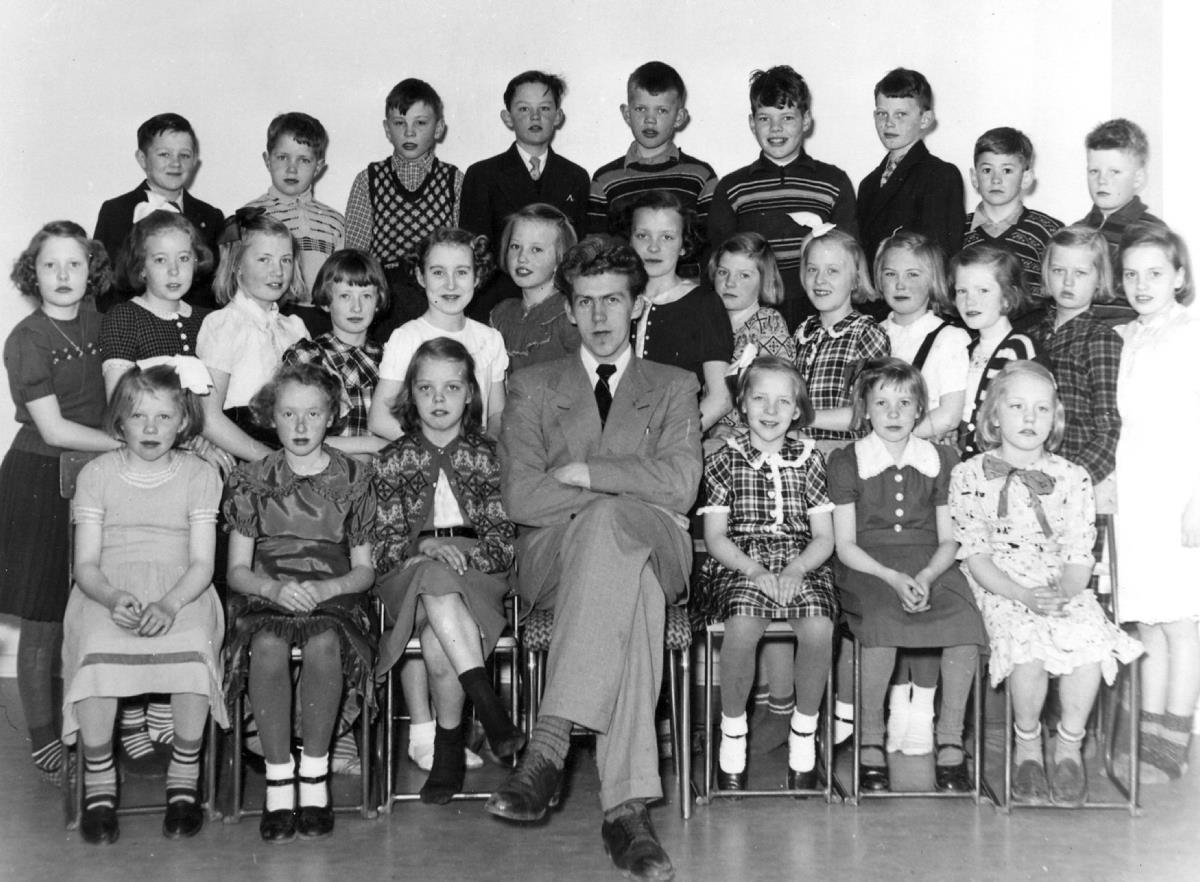 Ingvar Guðmundsson, kennari, og skólabekkur hans