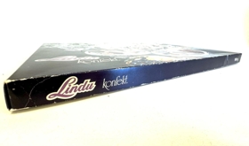 Stór flatur ferkantaður konfektkassi frá Súkkulaðigerðinni Lindu, Akureyri.
