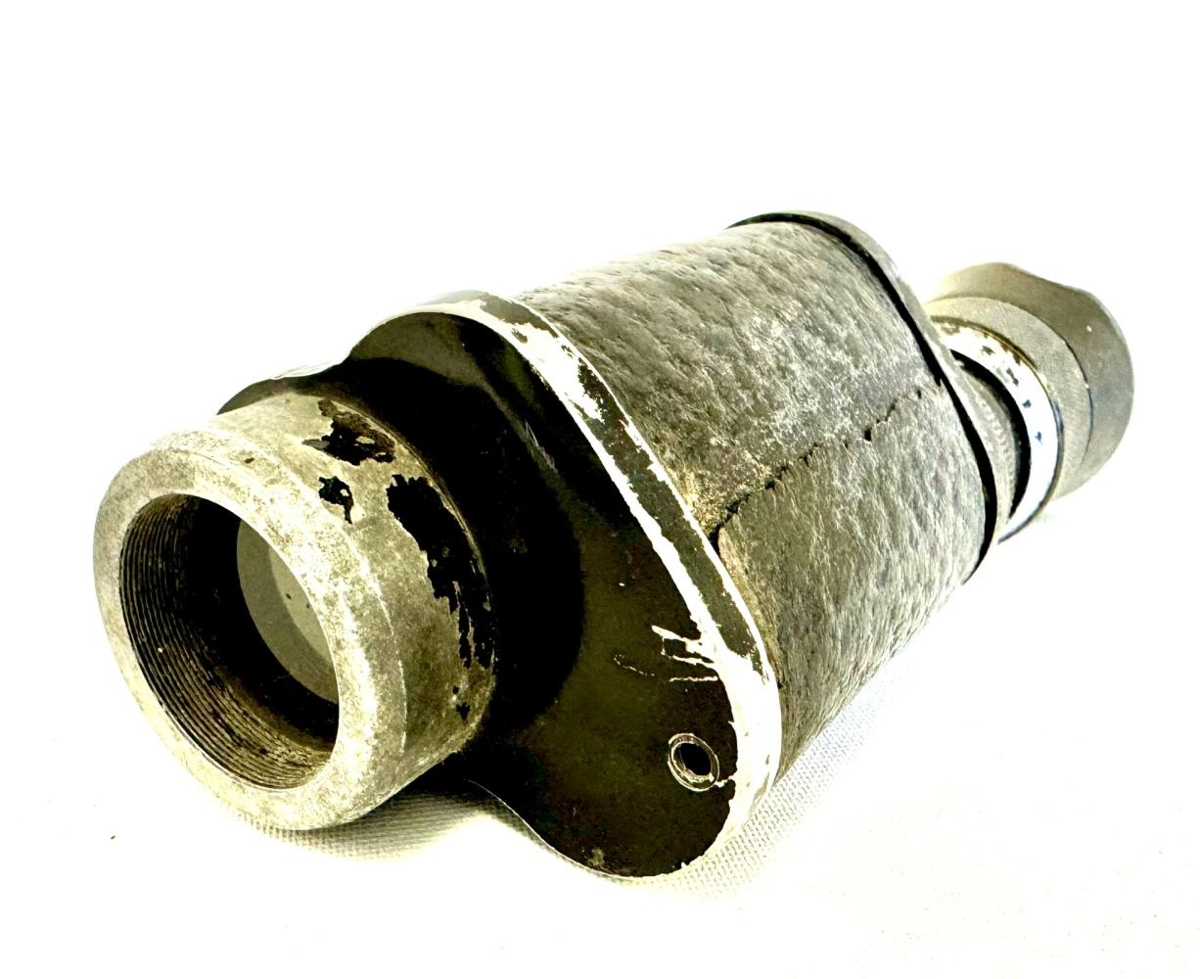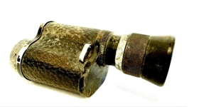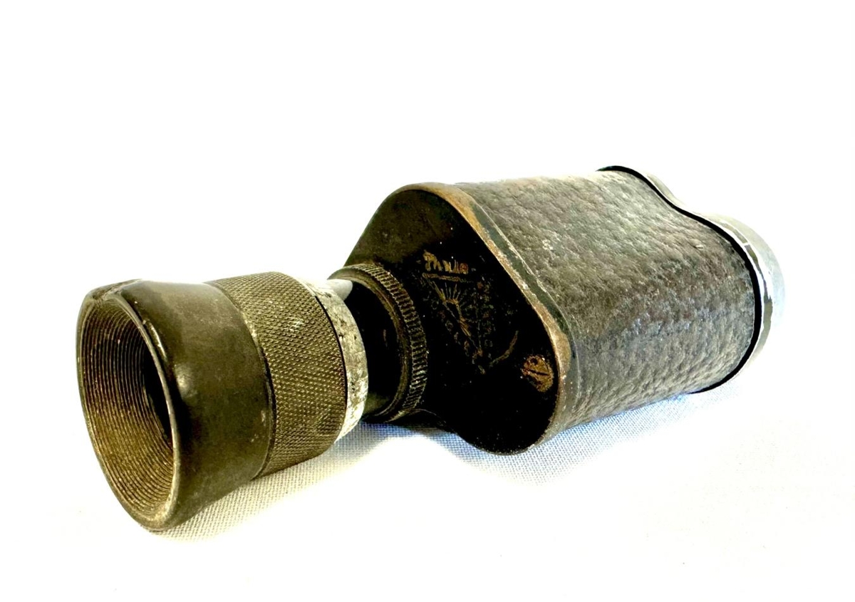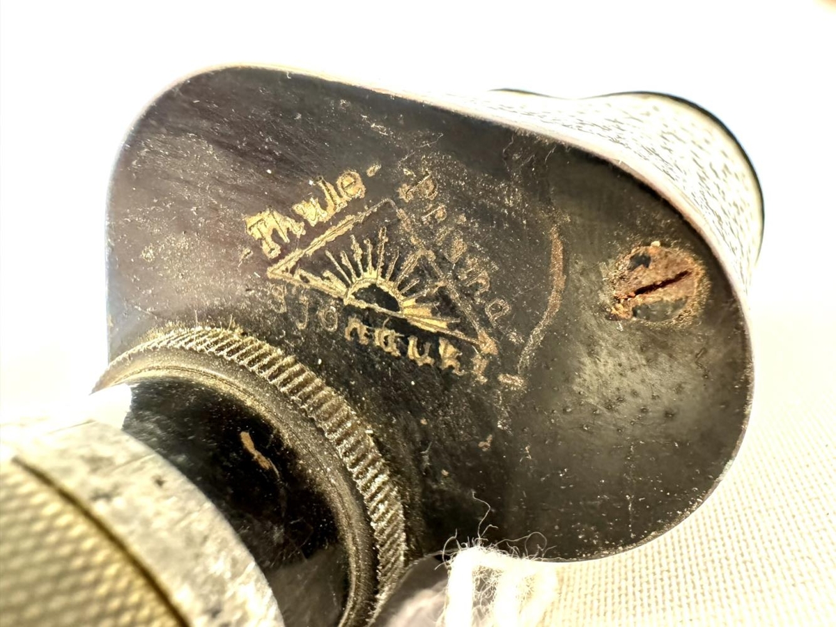 Lítill kíkir, sjónauki, fyrir eitt auga. Áletrun og merki. Merkið er þríhyrningslaga með eins og fjalli eða geislum eða sólaruppkomu í miðjunni. Áletrun er : Thule - prisina(?) - Sjónauki.