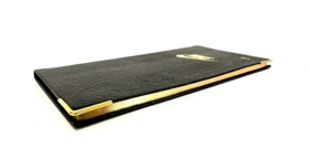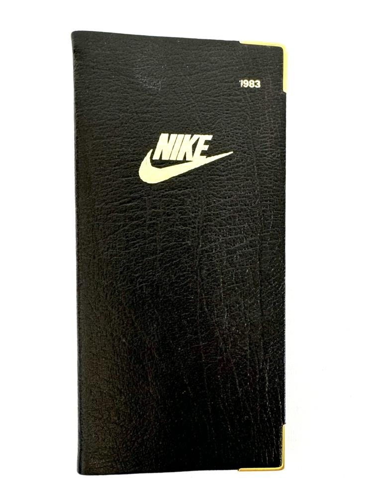 Svört nett minnisbók / dagbók með gylltri áletrun / merki framan á kápu ,,Nike,, - gylltur málmur á köntum bókarinnar.