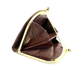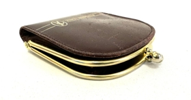 Lítil rauð peningabudda / peningaveski. Veskið er úr leðri eða leðurlíki með gylltri málmspöng sem klemmist saman til að loka veskinu. Veskinu er skipt í tvö hólf og er fóðrað að innan með þunnu efni. Á veskinu er gyllt áletrun og merki Búnaðarbanka Íslands.