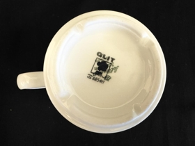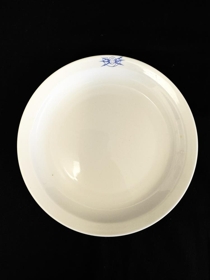 Bolli og diskur, hvítt sett með bláu merki Pósts og síma. Bollinn er um 10x7x8 cm og diskurinn 19x19x1,5cm að stærð.