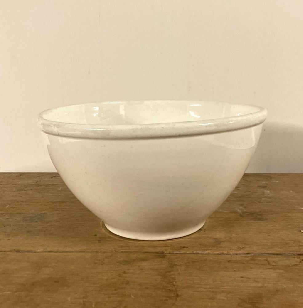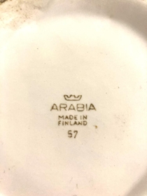 Hvít leirskál, bökunarskál. Merkt á botni: Arabia, made in Finland, 57.