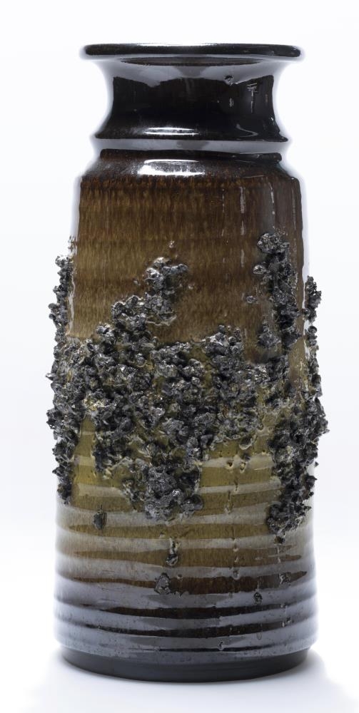 Árið 1962 sýndi Ragnar Kjartansson vasa úr keramiki úr öðrum efnum en venja var en hann hafði lengi verið að þróa þennan efnivið sem gerður var úr blágrýtishrauni sem bundið var með deiglumó frá Elliðaárbökkum. Vasarnir voru síðan mótaðir eins og höggmyndir. Samstarfsmenn hans fetuðu í fótspor hans með því að notfæra sér eiginleika hraunkeramiksins sem skapandi þátt í verkum sínum. Með tímanum þróaðist hraunkeramikið á þann hátt að það var orðið mjög frábrugðið upprunalegri hugmynd Ragnars. Þá var var farið að skreyta leirmuni á tilviljanakenndan hátt með hraunmulningi eins og sjá má á þessum vasa. Enn þann dag í dag er hraunkeramikið talið dæmigert fyrir íslenska leirlist.
