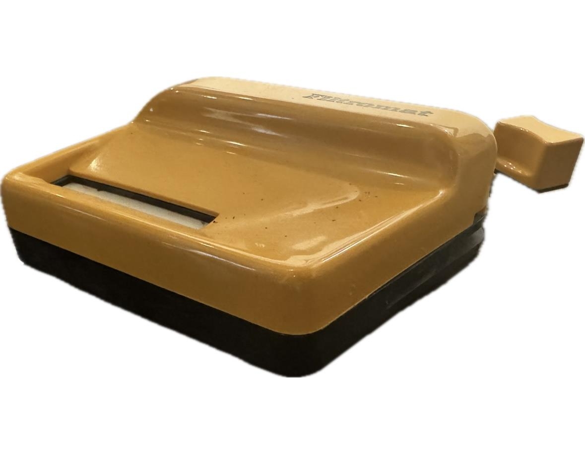 Vél til að vefja sígarettur. Gul og hvít úr plasti.
