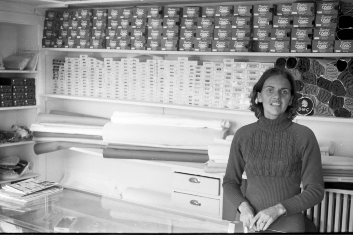 Erna Sigurbergsdóttir í hannyrðaverslun sinni