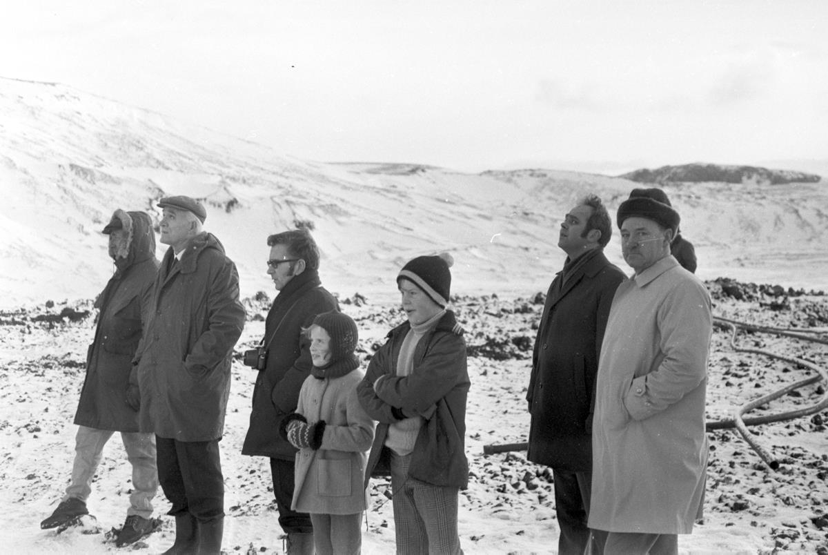 Borhola við Svartsengi, m.a. Kári Þórðarson, rafveitustjóri og Jóhann Einvarðsson, bæjarstjóri