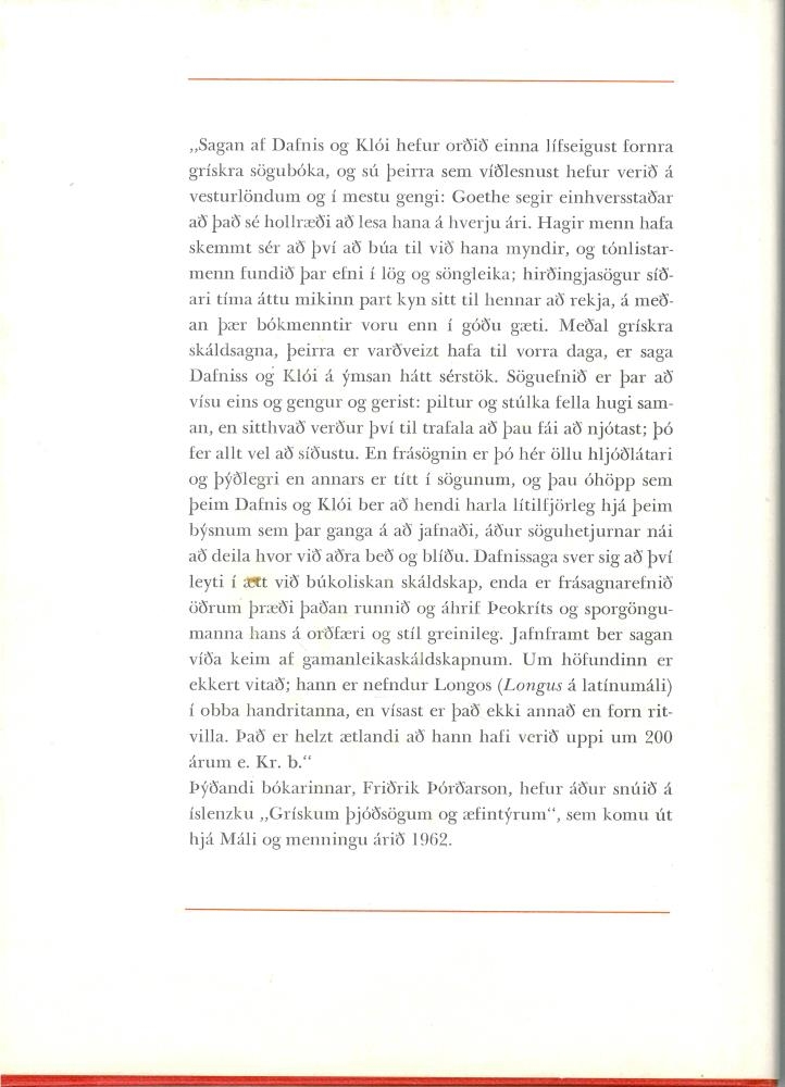 Dafnis & Klói eftir Longus, gefin út af Máli og menningu 1966. Kápa er eftir Gísla B. Björnsson