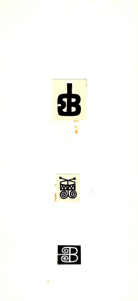 Skissur af nokkrum merkjum með bókstafnum B. Ein úrklippa 28,5x13cm