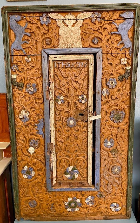 Skápur úr kirkju ,frá árinu 1726 og merktur ITHSA . Framhlið mikið útskorin. Skápur þessi var lengi hafður fyrir altari í Garðskirkju i Kelduhverfi. Helgi Gunnlaugsson á Hafursstöðum gerði hann upp og málaði snemma á 20. öld en þá hafði skápurinn greinilega verið málaður áður. Að sögn Theodórs, bróður Helga kom skápurinn frá Svínadal (eign einhverrar Soffíu) og var gefinn móður þeirra bræðra. Til er mynd af skápnum tekin