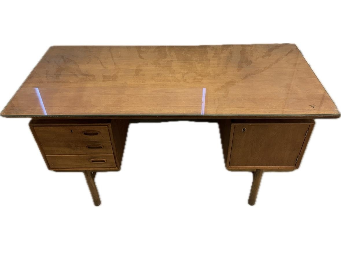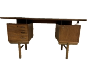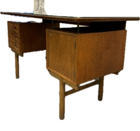 Skrifborð úr versluninni JMJ á Akureyri. Borðið var notað af þremur kynslóðum kaupmanna en JMJ var stofnað af Jóni M. Jónssyni, klæðskera árið 1956. Þegar umsvif JMJ voru hvað mest var rekin saumastofa sem hét Burkni á Akureyri og þar störfuðu 20-30 konur sem saumuðu meirihlutann af þeim fatnaði sem var seldur í verslunum JMJ. Lengst af voru tvær JMJ verslanir á Akureyri, önnur við Glerárgötu en hin við Ráðhústorg. Árið 1983 tók tengdasonur hans Ragnar Sverrisson við rekstrinum og síðar sonur hans Jón M. Ragnarsson.
