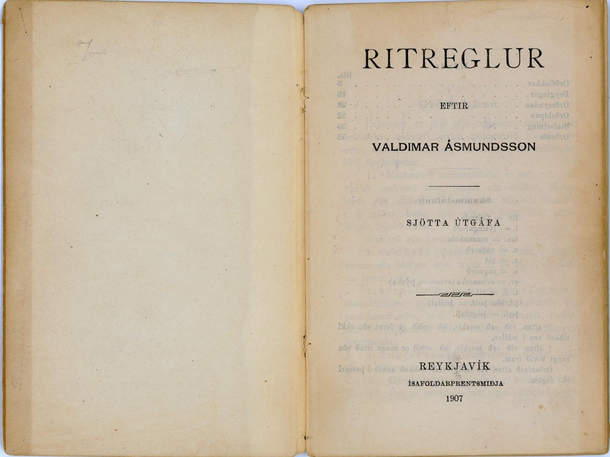 Ritreglur / eftir Valdimar Ásmundarson. - 6. útgáfa. - 60, [4] bls.