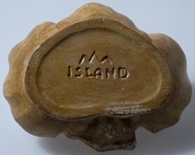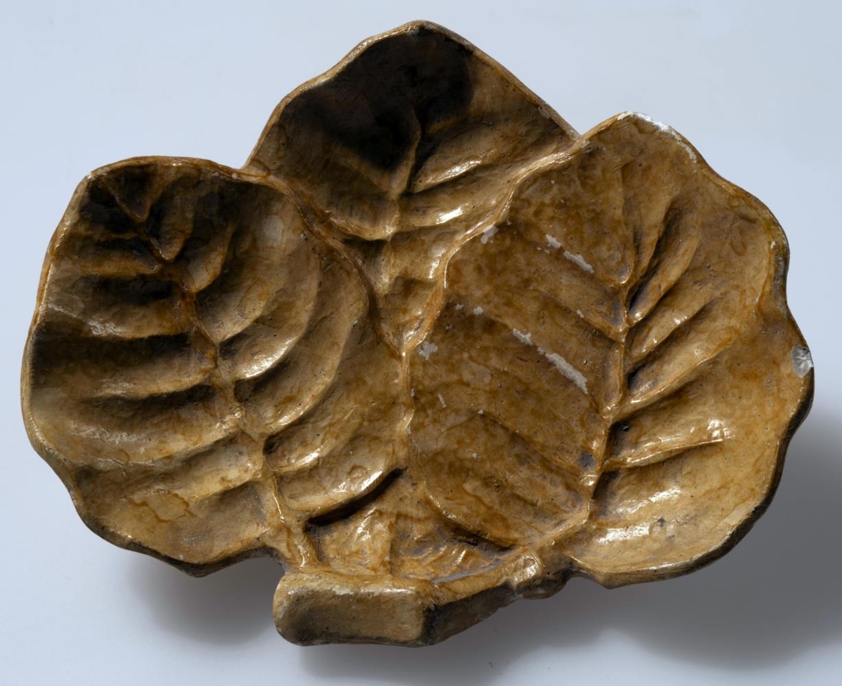 Lítil skál eða öskubakki, frummynd. Öskubakkinn er úr gifsi og er að forminu til eins og þrjú laufblöð. Hann er svokallaður kjarni eða „master" sem er hin eiginlega frummynd sem notuð er til að búa til mót fyrir keramikgripi (sjá nánar hér að neðan). Á botn öskubakkans er grafið ISLAND og merki Listvinahússins (burstir á burstabæ). Öskubakkinn er búinn til í Listvinahúsinu og er eftir Guðmund frá Miðdal. Borið hefur verið á styttuna efni af einhverju tagi sem gerir hana brúna á litinn. Á nokkrum stöðum hefur aðeins brotnað upp úr skálinni og þar sést glitta í hvítt gifs. Hæð: 3 cm, breidd: 12,5 cm, dýpt: 10 cm.