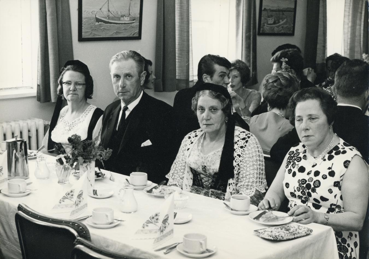 Frá vinstri: hjónin Ásdís Káradóttir og Sigurbergur Þorleifsson fyrrum vitaverðir á Garðskaga, Pálína Þorleifsdóttir systir Sigurbergs og Guðríður Sigurðardóttir frá Nýjabæ í Garði. Þau eru þarna stödd í brúðkaupsveislu Guðnýjar Júlíusdóttur frá Sóltúni í Garði og Helmuth Alexanders Guðmundssonar sem haldin var í samkomuhúsinu í Garði. Afhendandi myndar: Valgerður Marinósdóttir fósturdóttir Ásdísar og Sigurbergs.