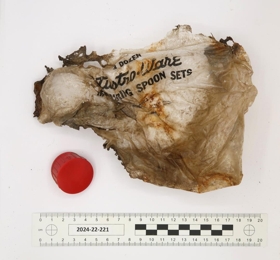 Plast utan um mæliskeiðar (12 saman á hring), 3 stk voru í pokanum. Vörumerkið er Lustro Ware, amerískt fyritæki.