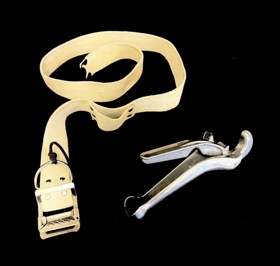 Skíðalyftubelti. Belti með krók til að krækja í skíðalyftur. Merkt Rannveig