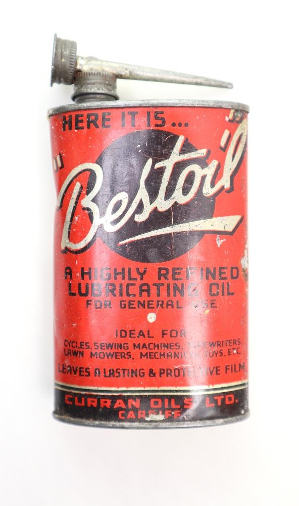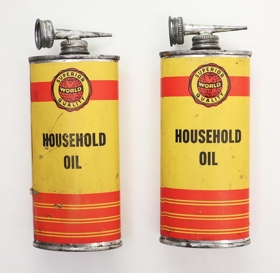 Fjórar gerðir af smurolíu til svipaðra nota. Meðal annars smurolía á málmbrúsa sem er rauður, grænn og hvítur með grænu og hvítu letri. Áletrun: "SINCLAIR HOUSEHOLD OIL, SINCLAIR PRODUCT, CLEANS, POLISHES, LUBRICATES, Will not gum, Prevents rust, Does not evaporate".