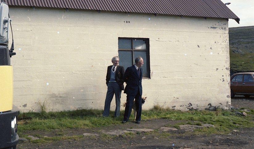 Eggert Ólafsson bóndi á Skarði II og Magnús Halldórsson bóndi og smiður í Búðardal á hlaðinu á Skarði á Skarðsströnd.