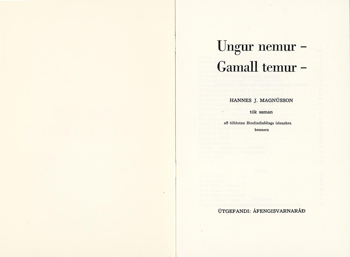 Ungur nemur - gamall temur / Hannes J. Magnússon tók saman að tilhlutan Bindindisfélags íslenzkra kennara ; Stefán Jónsson teiknaði myndirnar. - 3. prentun. - 64 bls. : myndir