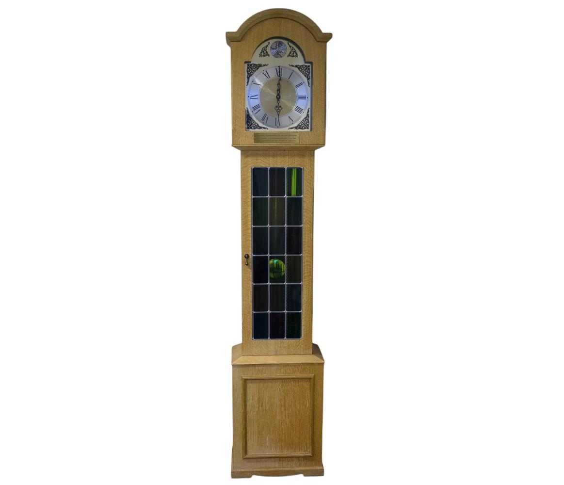 Texti á skildi á klukku: Svanlaug Sigurðardóttir og Þorgeir Jósefsson. Heilaóskir á gullbrúðkaupsdaginn 9.10.1976. Frá starfsmönnum hjá Þorgeir & Ellert h.f.