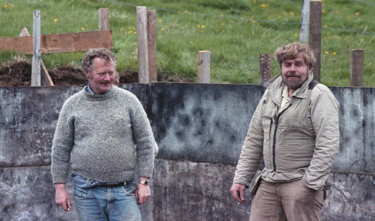 Franklín Þórðarson bóndi í Litla-Fjarðarhorni og Sigmundur Sigurðsson í Lyngási að byggja kartöflugeymslu í Litla-Fjarðarhorni.