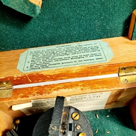 Enskur Husun sextant framleiddur af Henry Hughes & Son LTD í London. #36249 úr búi Vilhjálms Helga Pálssonar (1929-2024) frá Húsavík. Innaná loki trékassans er vottorð því til staðfestingar að sextanturinn hafi verið yfirfarinn 26/8/43. Utaná kassanum er skrifað með tússi StR2 og rispað á sextantinn sjálfann líka.