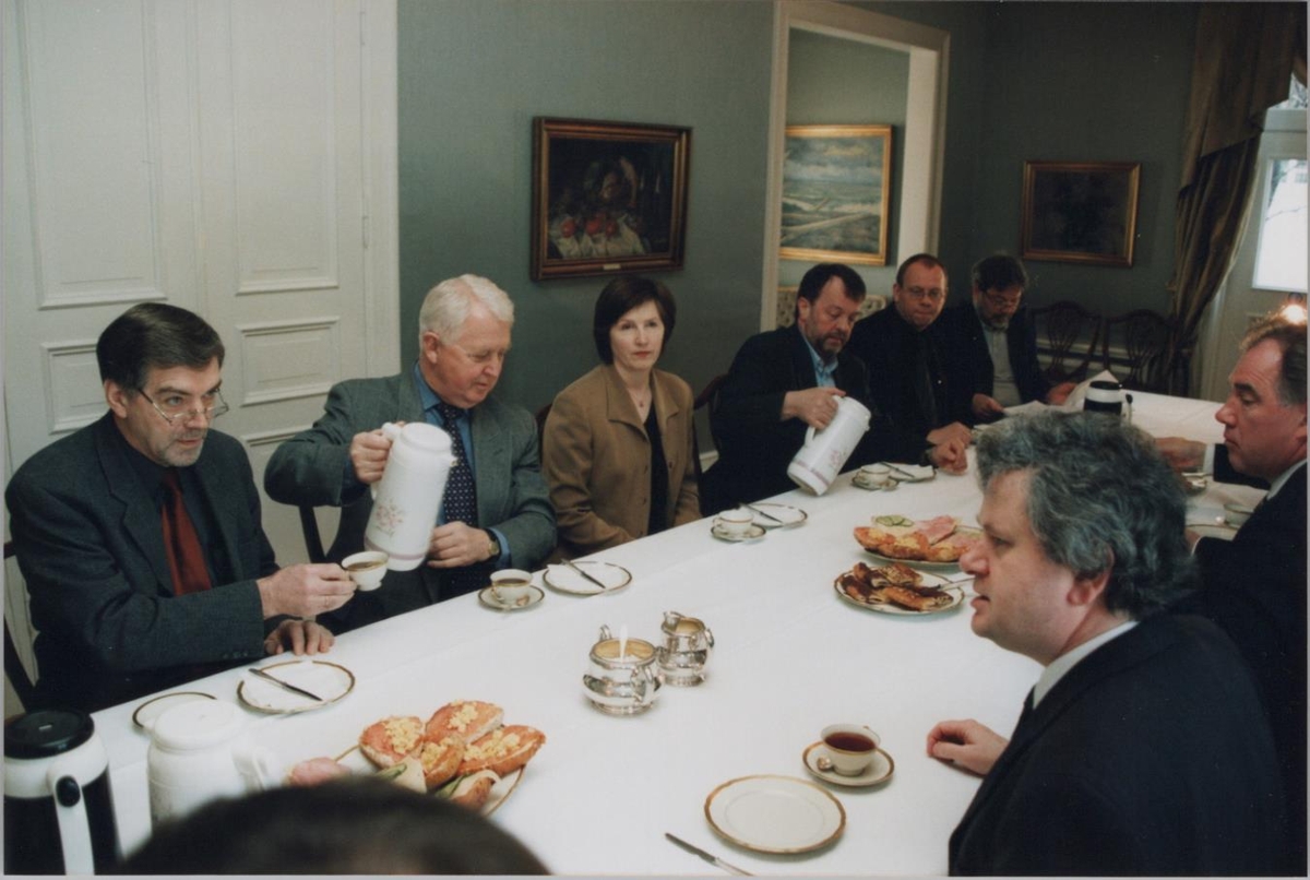 Fundur í og við ráðherrabústaðinn til Tjarnargötu. Óþekkt tilefni.