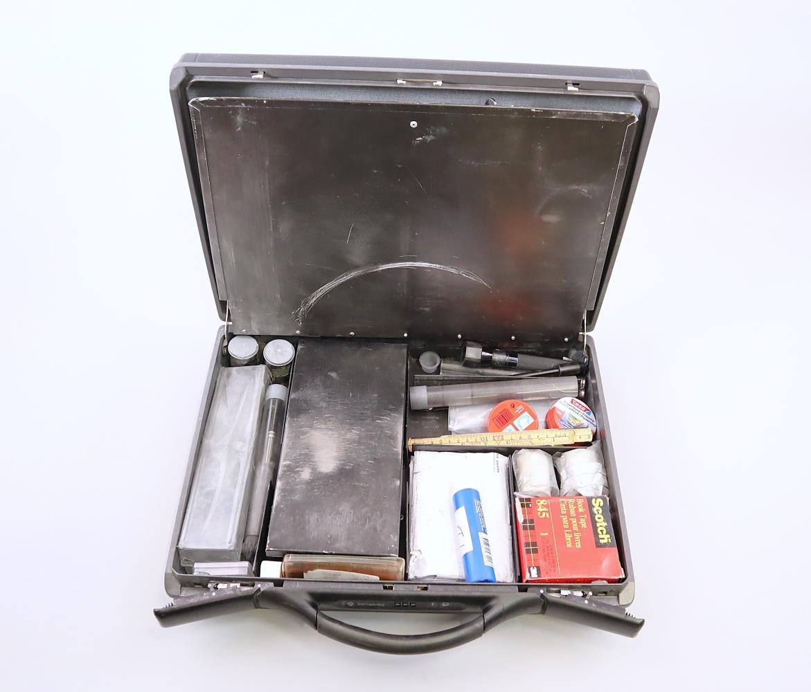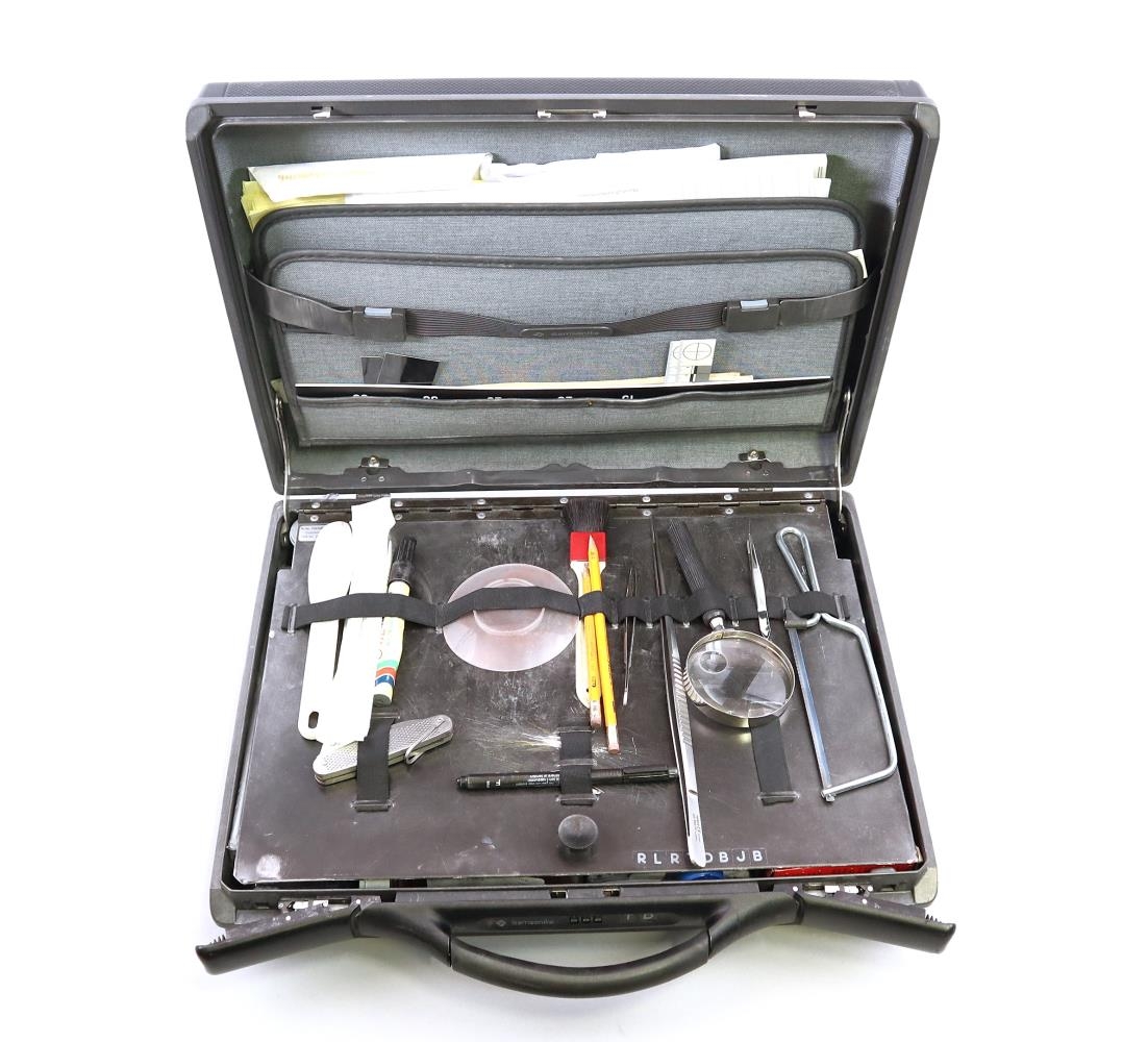 Taska tæknirannsókna frá ríkislögreglustjóraembættinu. Svört skjalataska sem inniheldur ýmsan búnað til lögreglurannsókna, m.a. tæki til fingrafararannsókna og margt fleira.