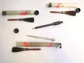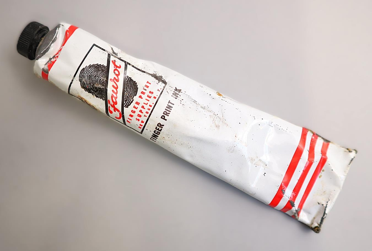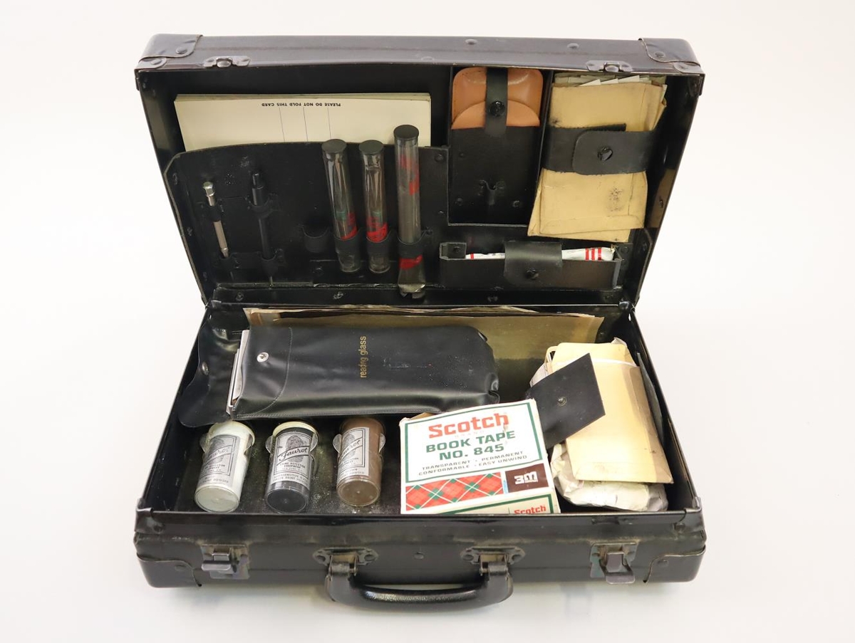 Taska tæknirannsókna frá ríkislögreglustjóraembættinu. Svartlit og með tveimur smellum til að loka. Inniheldur búnað til lögreglurannsókna. Helst búnað til fingrafararannsókna á vettvangi.