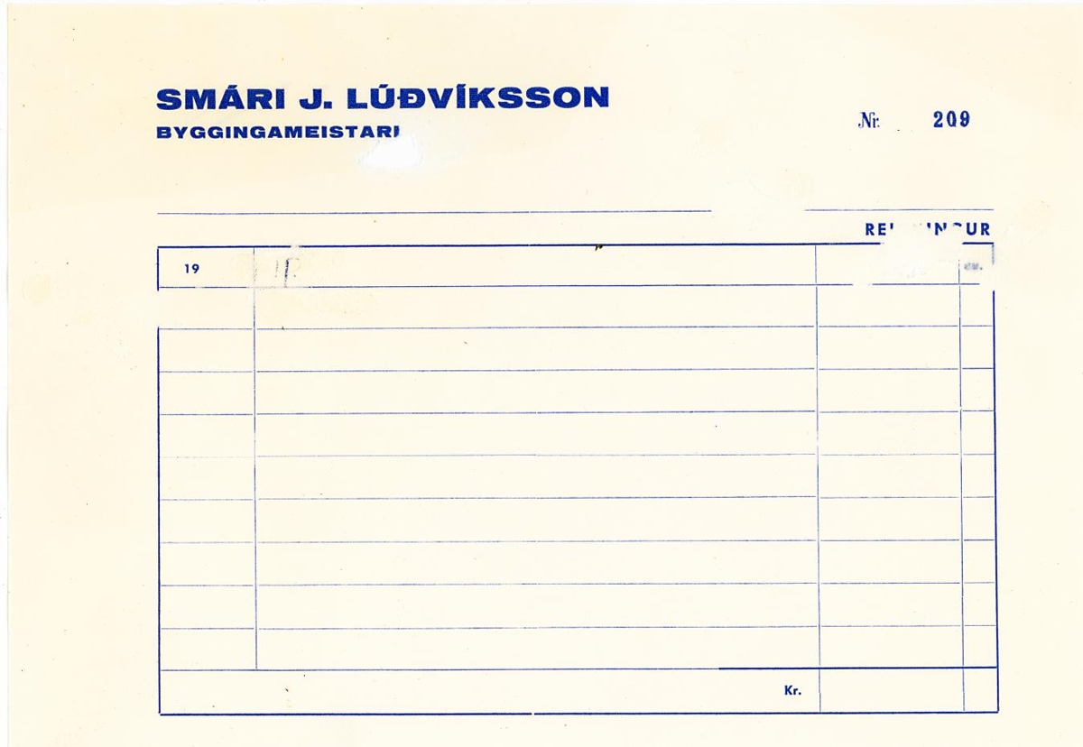 Reikningeyðublað frá Smára J. Lúðvíkssyni byggingameistara