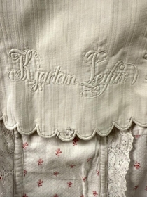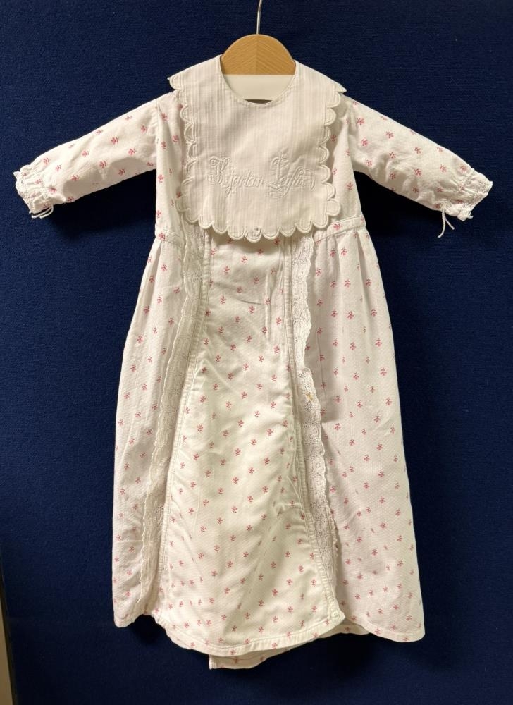 Skírnarkjóll Kjartans Leifs Markússonar (f. 8.4.1895 - d.15.9.1964) frá Hjörleifshöfða. Saumaður 1895 af móður hans, Áslaugu Skæringsdóttur frá Skarðshlíð. Í smekkinn er saumað: "Kjartan Leifur". Afhent af frú Ástu Aðalheiði Þórarinsdóttur, ekkju Kjartans , samkvæmt ákvörðun hans.