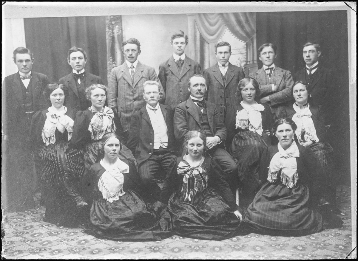 Hópmynd, stór hópur fólks, eftirtaka. Líklega 1921.