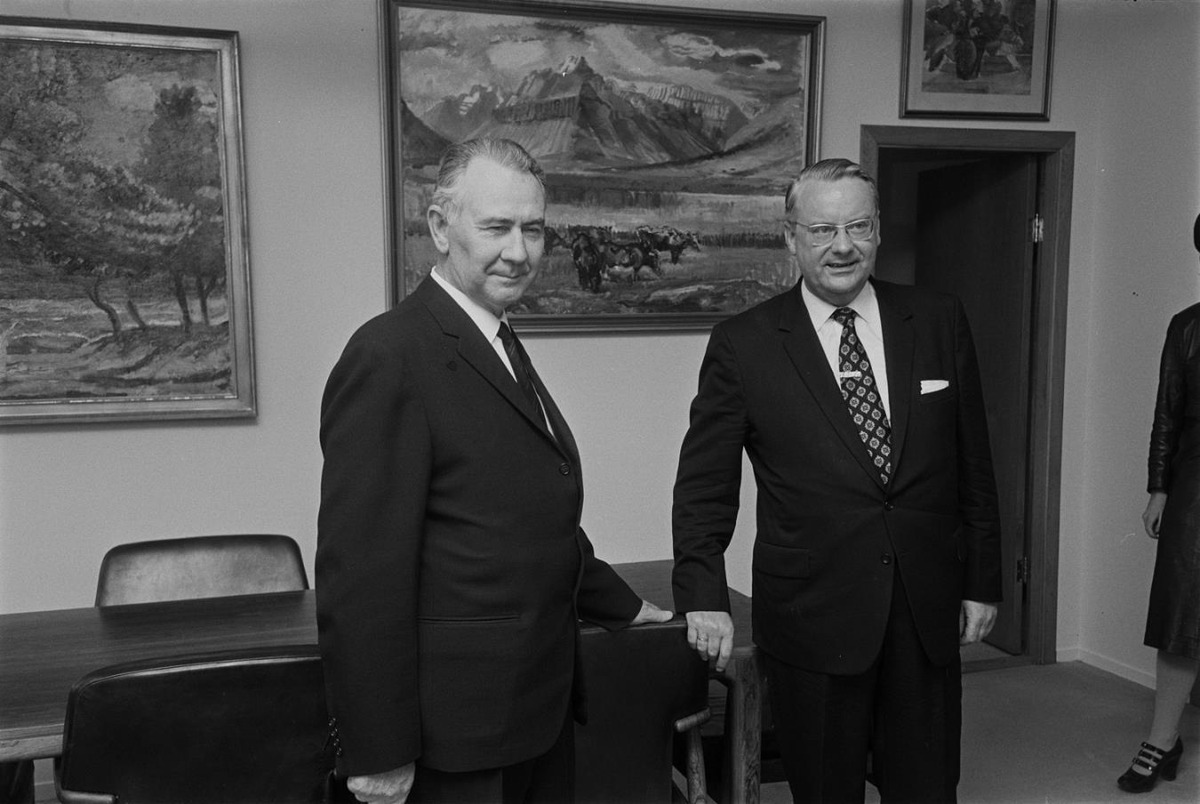 Ríkisstjórnarskipti, nýir ráðherrar taka við embættum sínum þann 14. júlí. Í Viðskiptaráðuneytinu, Gylfi Þ. Gíslason og Luðvík Jósepsson.