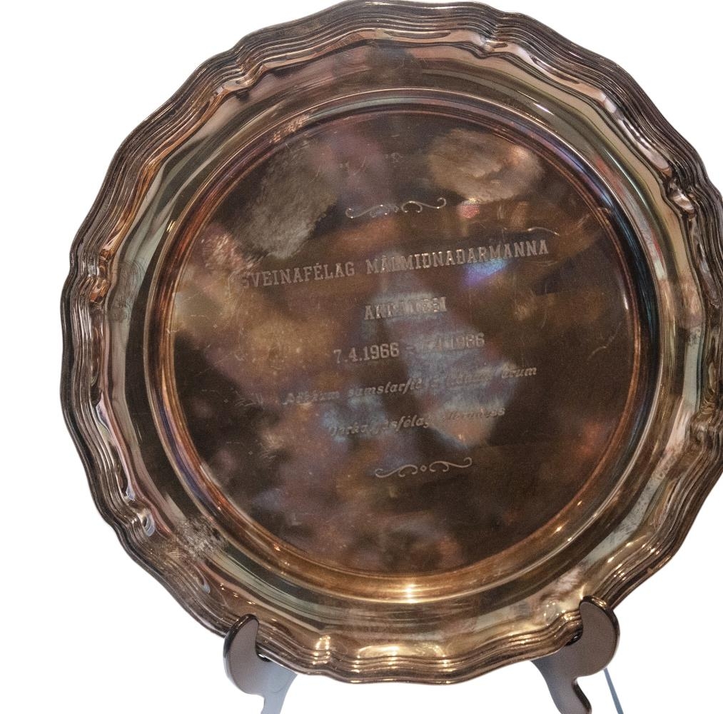 Texti á platta: Sveinafélag málmiðnaðarmanna Akranesi 7.4.1966 - 7.4.1986 - Þökkum samstarfið á liðnum árum Verkalýðsfélag Akraness