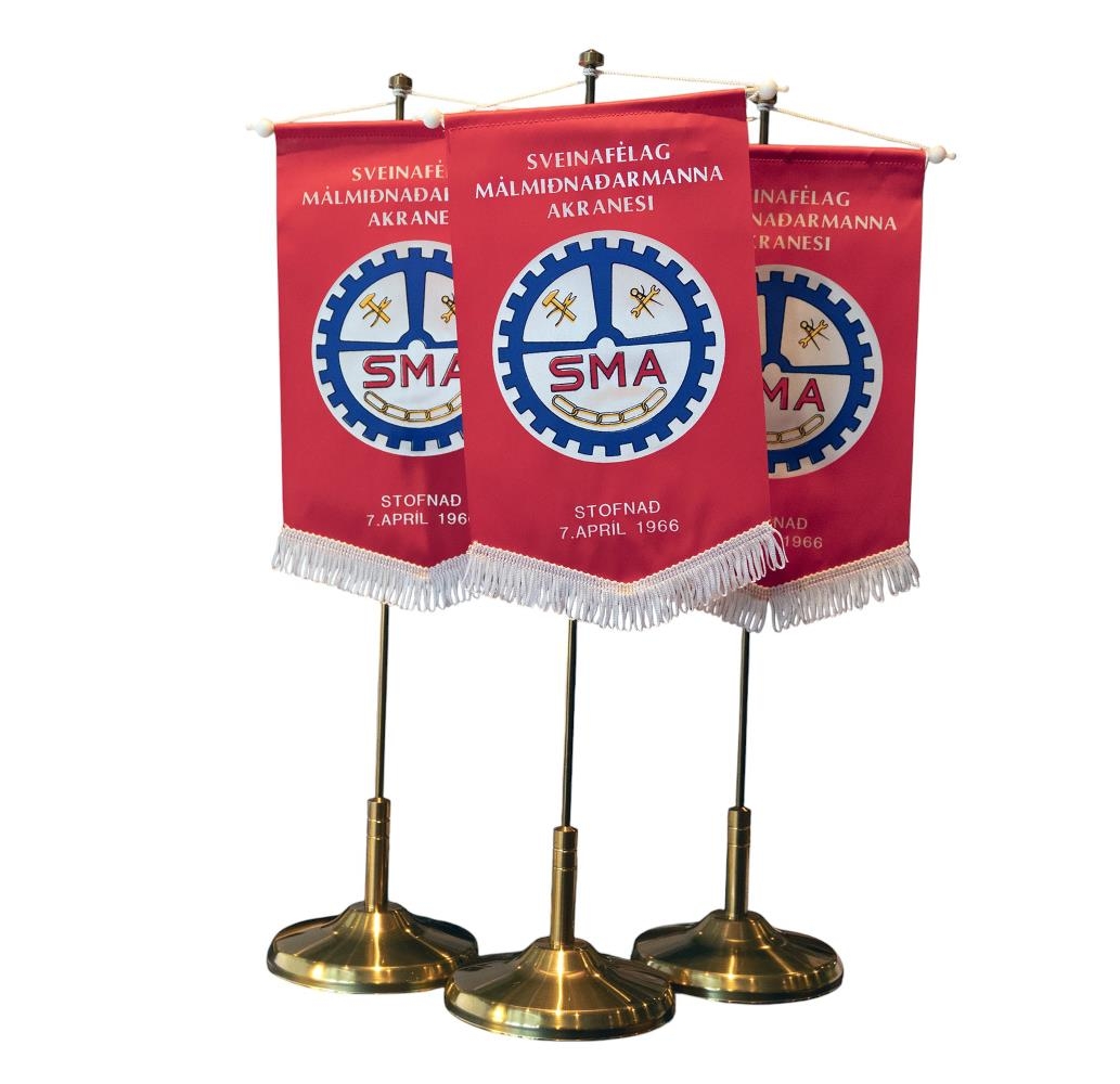 Texti á fána: Sveinafélag málmiðnaðarmanna Akranesi - STOFNAÐ 7. APRÍL 1966