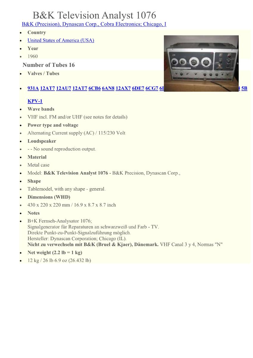 Proper noun: B&K TV Analyst Model 1076