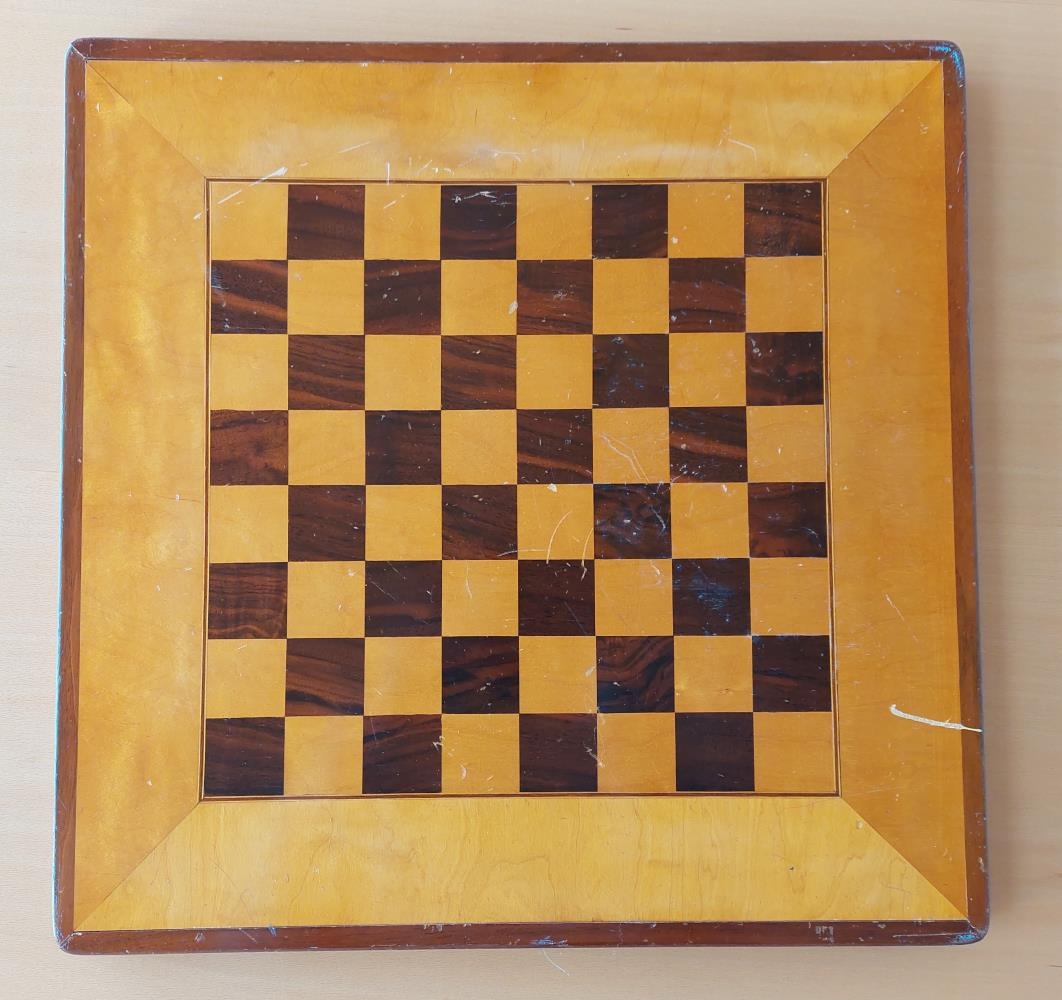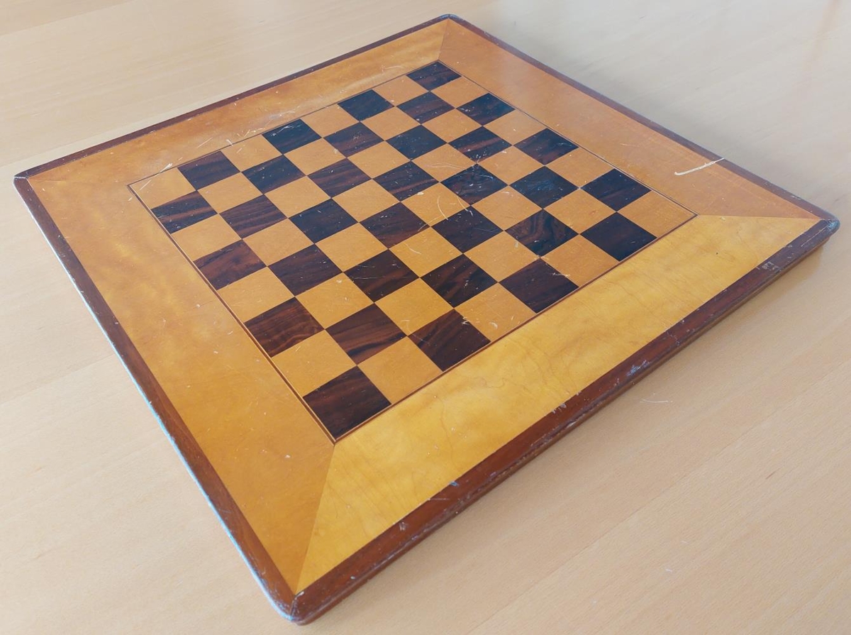 Skákborð smíðað af Ásgeiri Jónssyni á Aflstöðum í Haukadal um 1950 handa Óskari Sumarliðasyni í Grund í Búðardal við Hvammsfjörð.
