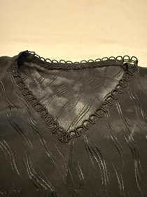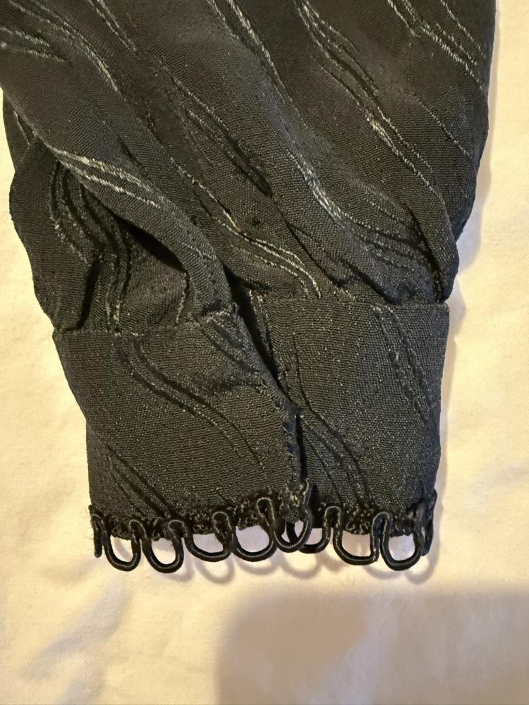 Dagtreyja Guðrúnar Árnadóttur frá Efstu Grund u. Eyjafj. Svört. Smellt að framan með 5 smellum sem og fremst á ermum. Teyja í mitti.