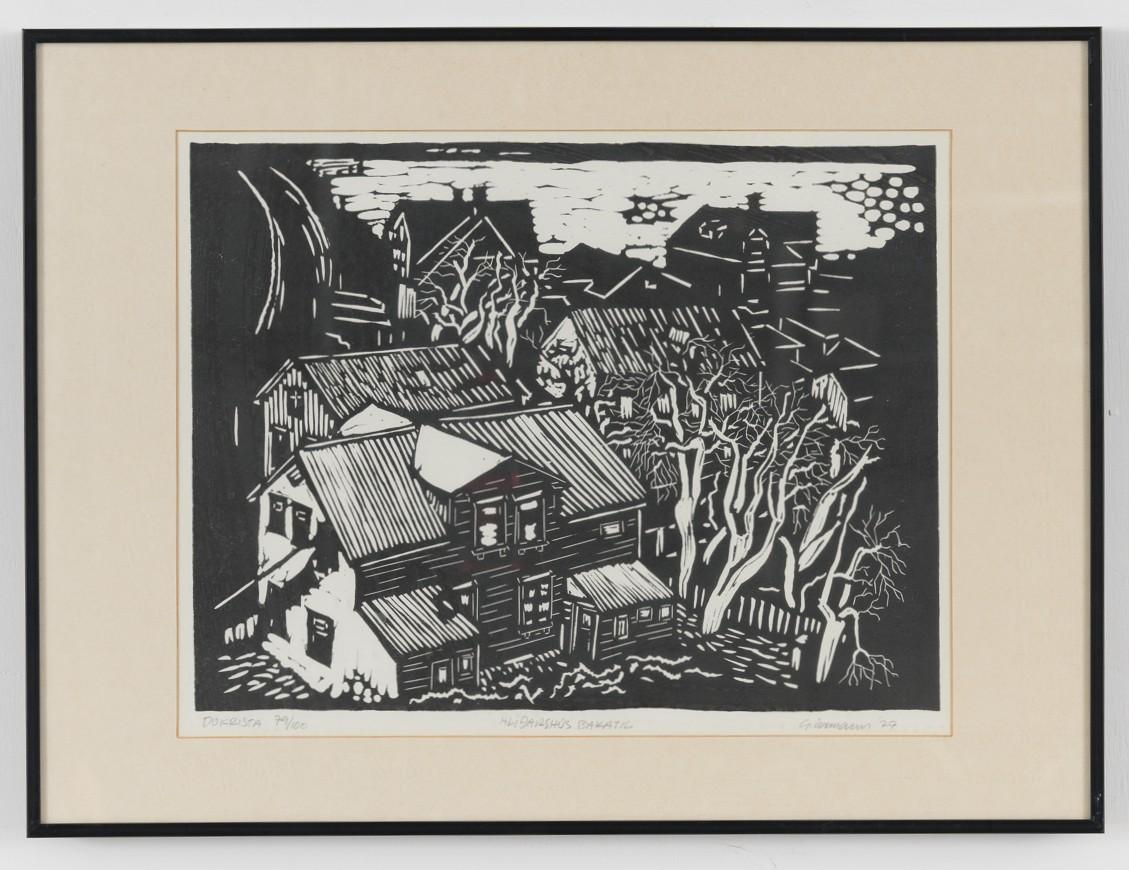 Go Back To SearchDo you know more?Save to My CollectionPrintCopy linkOrder a photoTerms of UseHlíðarhús bakatil= 1979, Guðmundur Ármann SigurjónssonIn preservation atAkureyri Art MuseumMain informationTitleArt title: Hlíðarhús bakatilDating= 1979Object-related numbersMuseumnumber a: Listak-156 "Museumnumber b": 5163Dimensions21 x 27.5 x 0 cmRecord typeArtCollectionUndirskrá: AðalskráInscriptionSignature: G. Ármann '79ClassificationGrafík, Háþrykk, DúkristaEdition/Series81 / 100