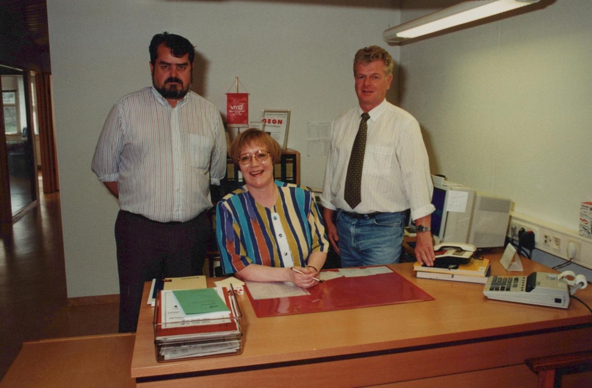 Starfsfólk VMSÍ í nýju húsnæði í Skipholti. T.v. Björn Grétar Sveinsson, Kolbrún Þorkelsd og Snær Karlsson. Vinnan 6. tbl sept 1995. Mynd: Róbert.
