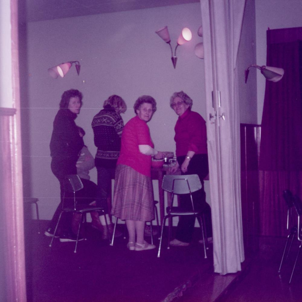 Hrefna Ásgeirsdóttir, Erna Óskarsdóttir ofl. að undirbúa erfisdrykkju í Vogalandi.