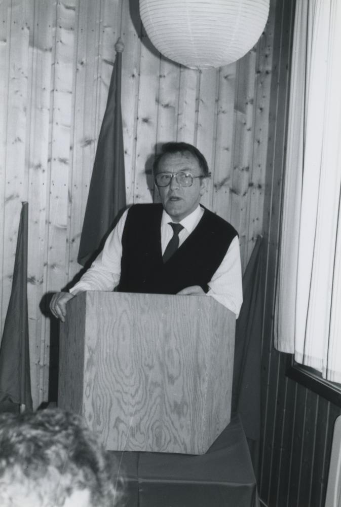 Karlmaður í ræðustól, Pétur Sigurðsson á Ísafirði.