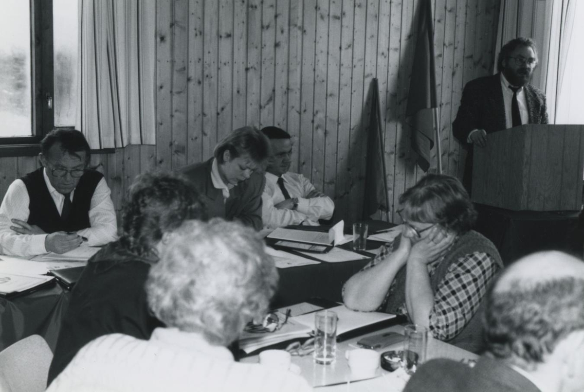Ásmundur Stefánsson í ræðustól, í salnum m.a. Pétur Sigurðsson á Ísafirði.